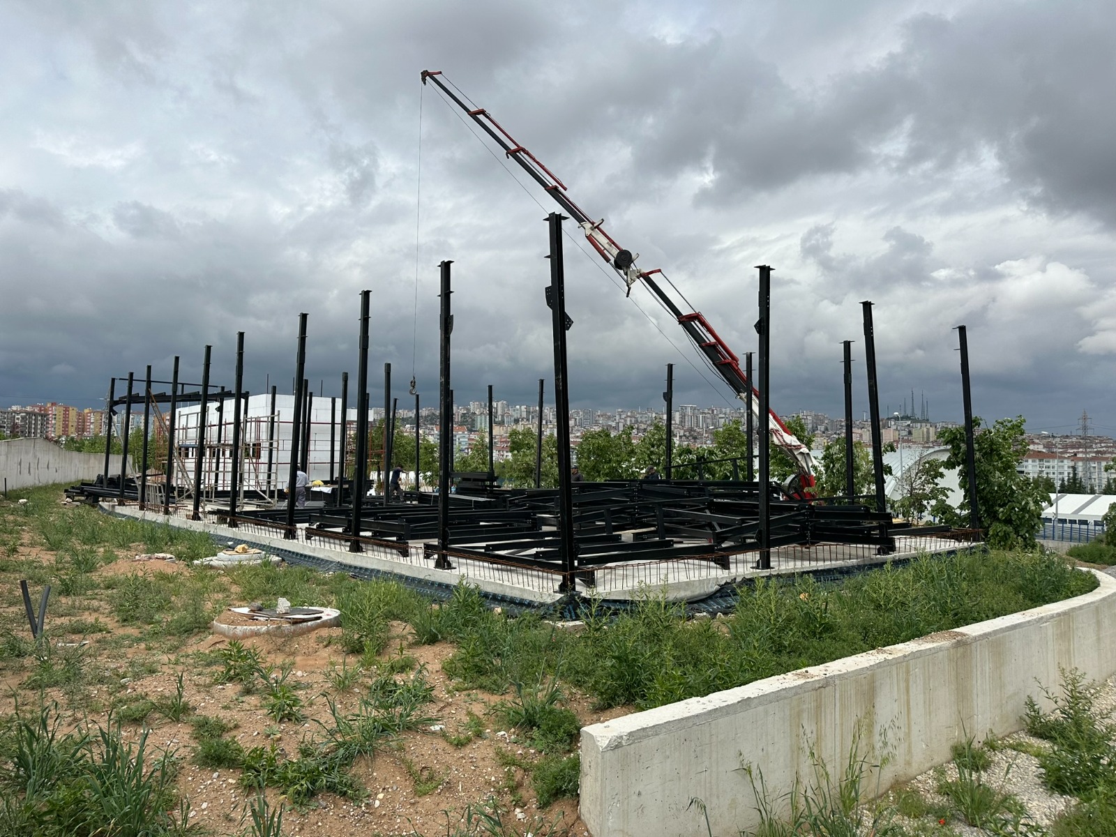 Proje kapsamında, mevcut alan üzerinde çelik konstrüksiyon yapılar, altyapı uygulamaları, park alanları ve peyzaj düzenlemeleri bütüncül bir yaklaşımla ele alınmıştır. Yapım süreci; zemin hazırlığından taşıyıcı sistemlerin kurulmasına, üstyapı imalatlarından çevre düzenlemesine kadar tüm aşamaları içermektedir.
