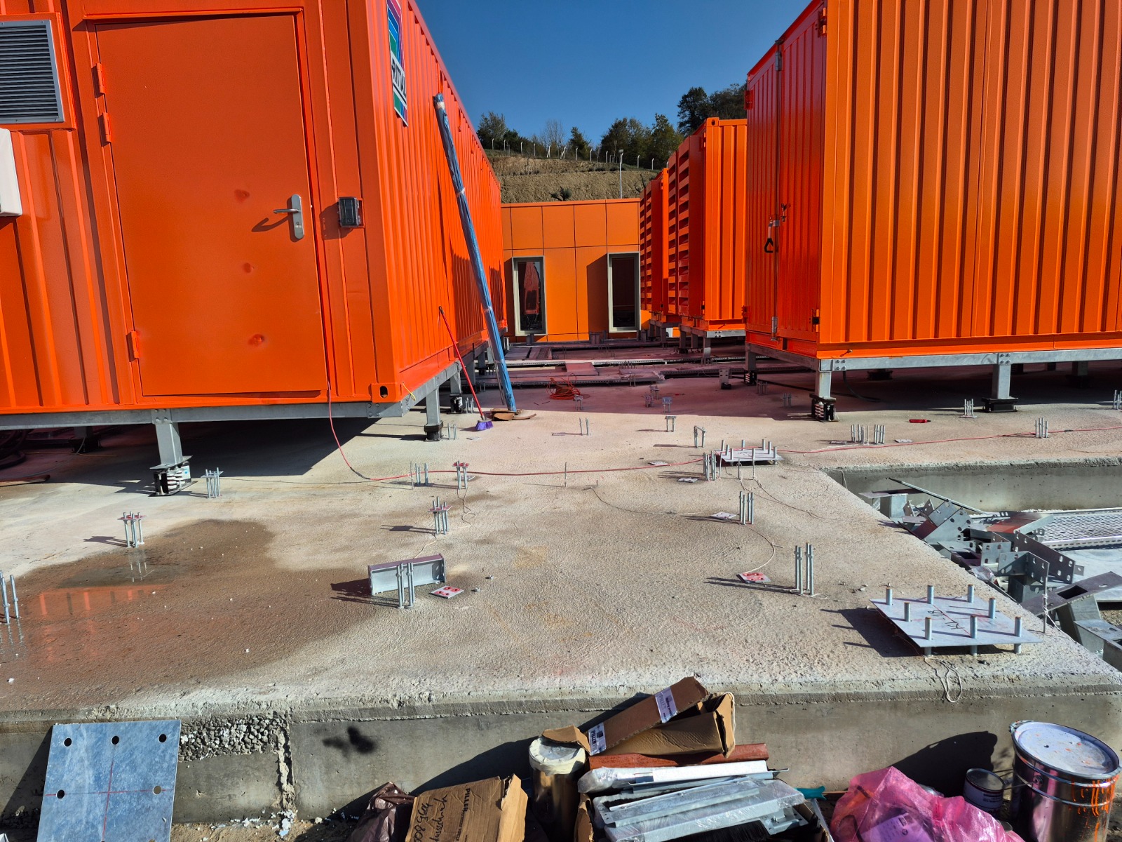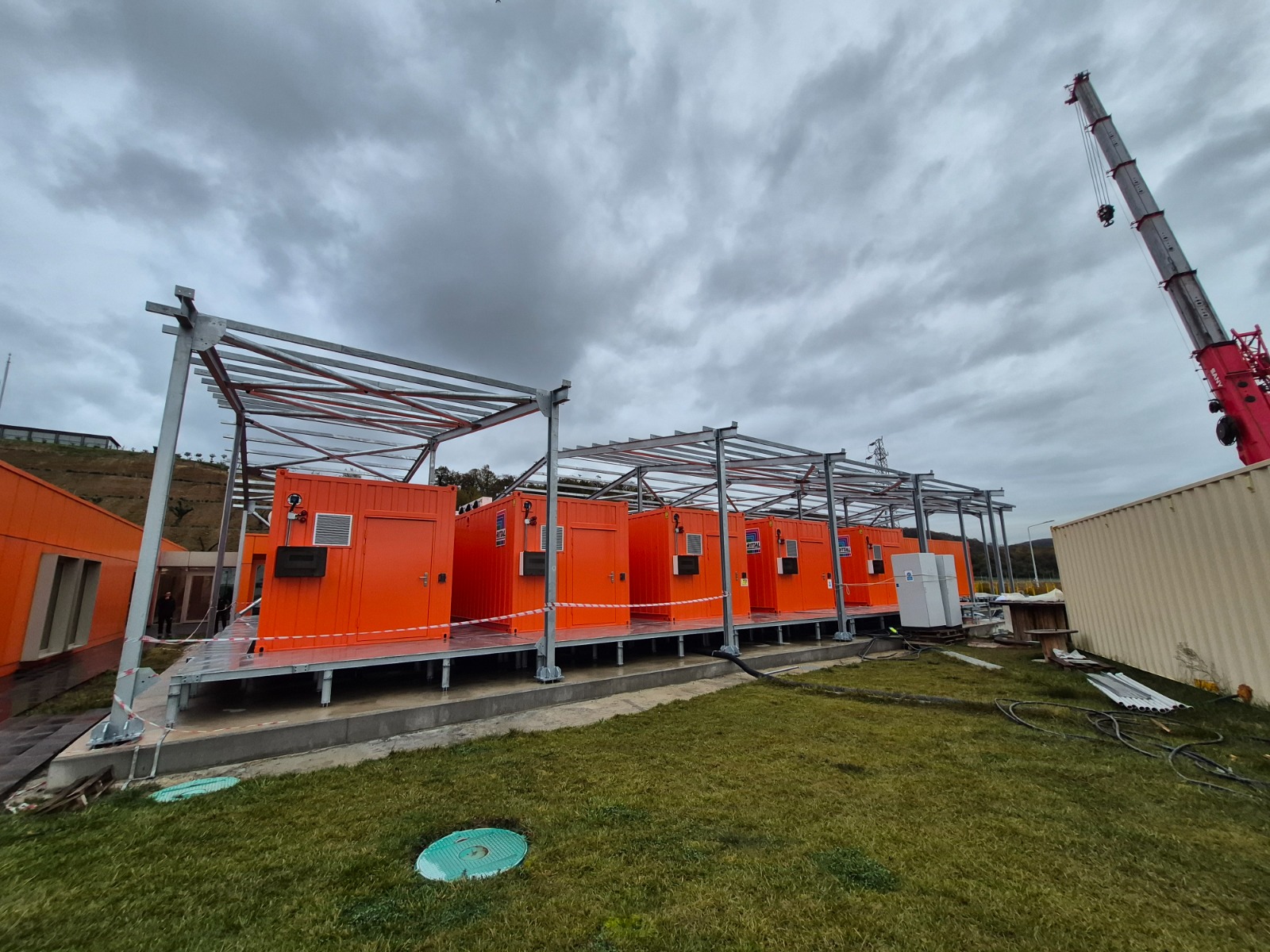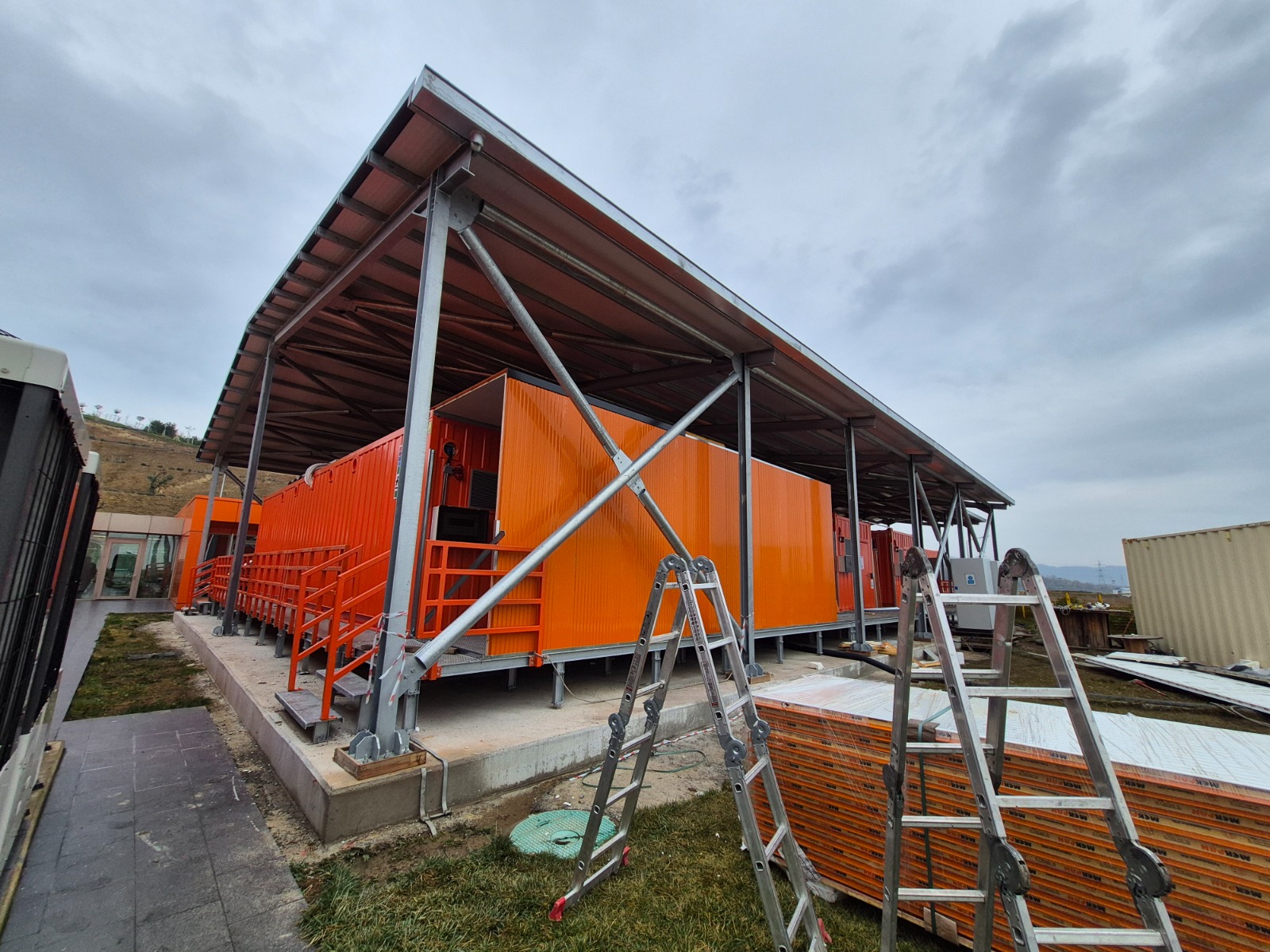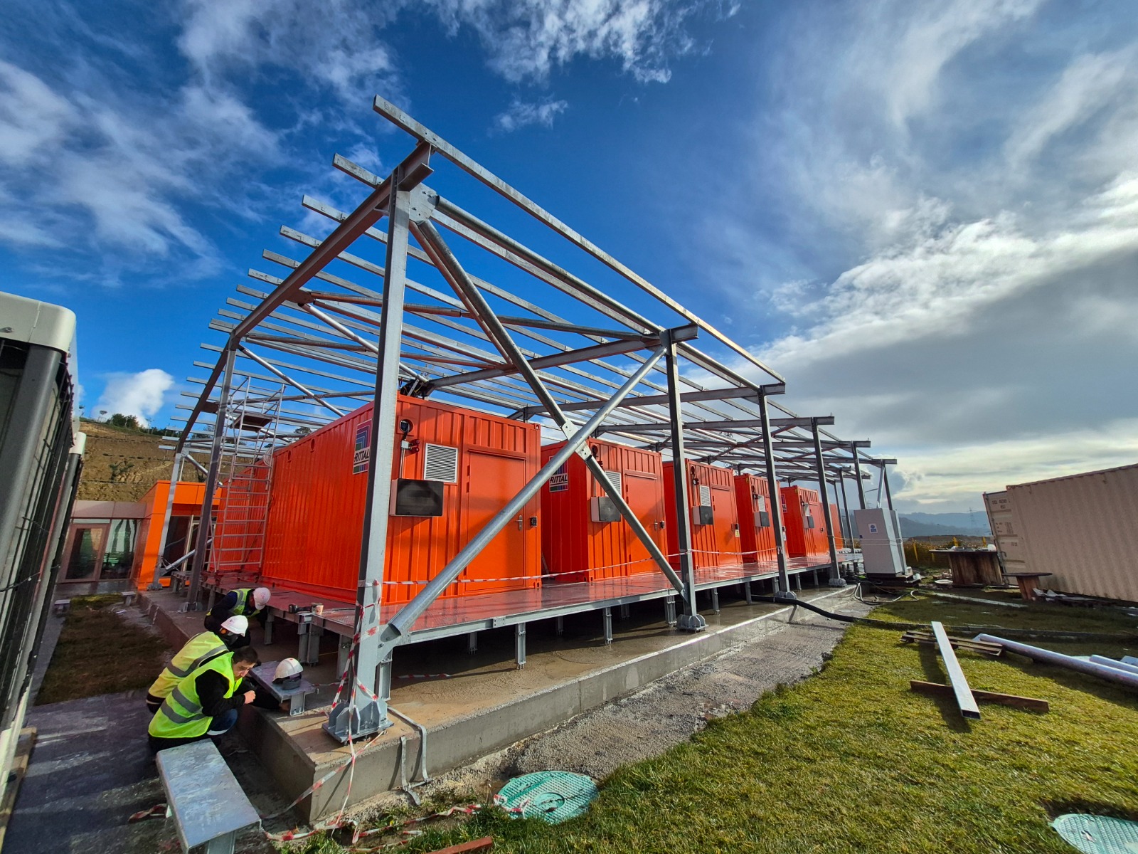 Proje kapsamında; konteynerlerin üzerinde ve çevresinde, yüksek dayanımlı galvanizli çelik konstrüksiyon sistemleritasarlanmış ve uygulanmıştır. Çelik taşıyıcı sistemler, bölgenin iklim koşulları, rüzgâr yükleri ve uzun süreli kullanım senaryoları dikkate alınarak mühendislik hesaplarıyla projelendirilmiştir.