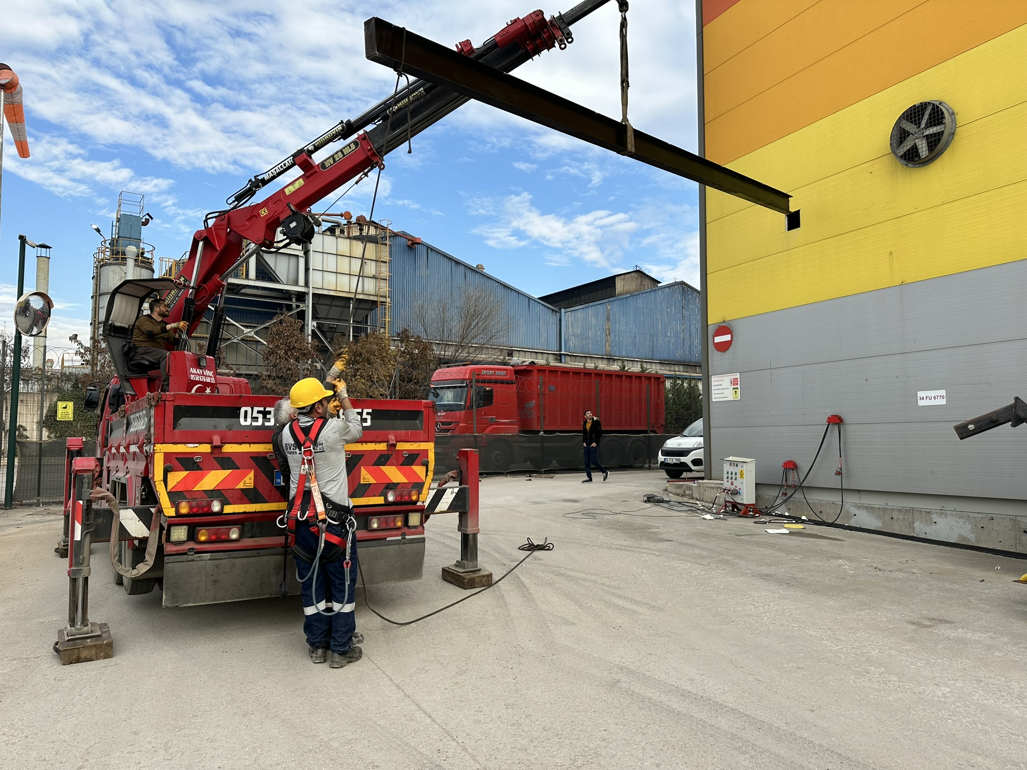 Montaj süreci ilerlerken tüm çelik elemanlar projede belirtilen sıra ve yöntemle konumlandırılır. Vinç operatörleri, montaj ekipleri ve mühendisler arasında anlık iletişim bulunur; her kaldırma işlemi profesyonel işaretçiler tarafından yönlendirilir. Operasyonlar, hava koşulları ve saha dinamikleri dikkate alınarak planlanır. Her elemanın doğru konumda sabitlenmesi, yapının genel stabilitesi açısından büyük önem taşıdığı için bu aşamada mühendislik denetimleri titizlikle sürdürülür.